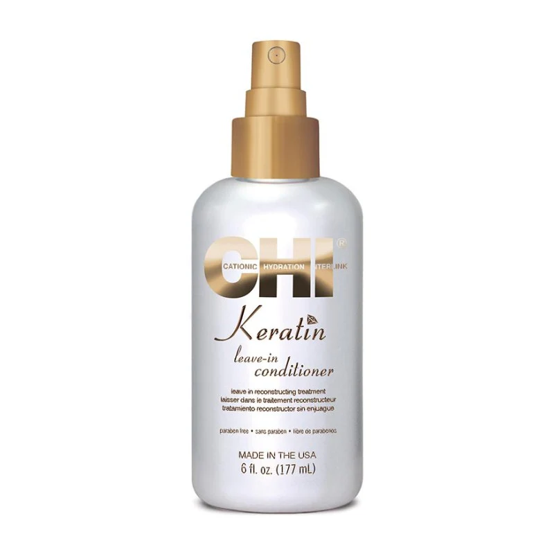1. Spray CHI Keratin Leave In Conditioner op handdoekdroog haar
