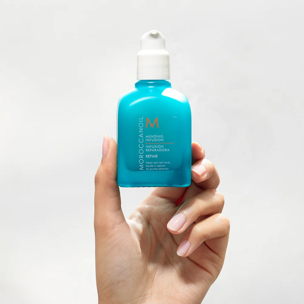 De Moroccanoil Mending Infusion is een oplossing voor gespleten haarpunten. De Moroccanoil Mending Infusion is een vitaminerijke formule met quinoaproteïnen die het haar voedt, verzorgt en versterkt, voor een zijdezachte, pasgeknipte uitstraling. De ultra-lichtgewicht formule op basis van arganolie vermindert de zichtbare tekenen van beschadigd haar, zoals gespleten punten, uitdroging en kleurbeschadiging. Het temt kroezig, pluizig haar om verdere beschadiging te voorkomen. Een melange van arganolie en baobabextract, rijk aan antioxidanten en aminozuren, maakt droge, broze haarpunten weer zijdezacht en soepel.
