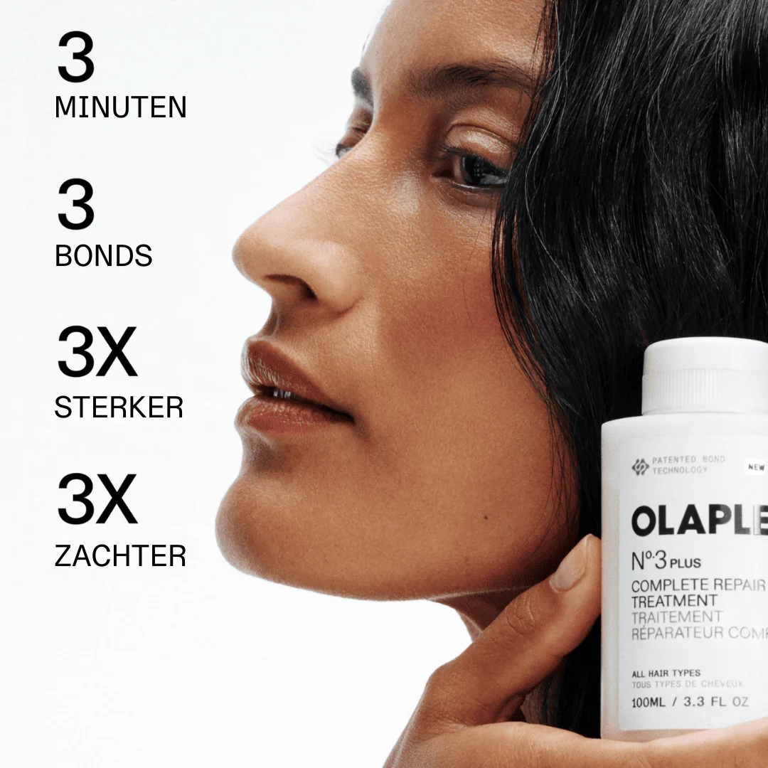De OLAPLEX No.3PLUS Complete Repair Treatment herstelt beschadigd haar in slechts 3 minuten vóór het wassen. Deze intensieve herstelbehandeling maakt het haar tot 3 keer sterker en zachter en helpt alle drie de haarverbindingen te herstellen voor sterker en veerkrachtiger haar. De formule hydrateert het haar, vermindert pluis en maakt het gladder en beter handelbaar. Geschikt voor alle haartypes en alle vormen van beschadiging. De behandeling is proteïnevrij, kleurveilig en geschikt voor chemisch behandeld haar en extensions.